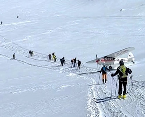 15. August 2025: Der Start einer Piper Super Cub auf dem Gletscher…