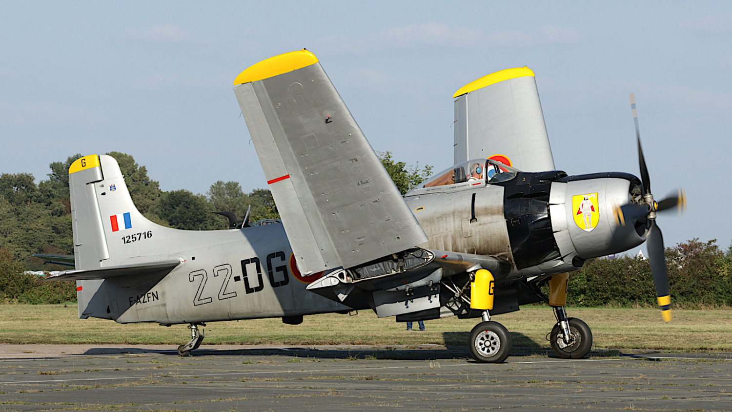- F-AZFN Douglas AD-4N Skyraider, lässt gerade ihre Flügel herab. Foto Thomas Staffelbach