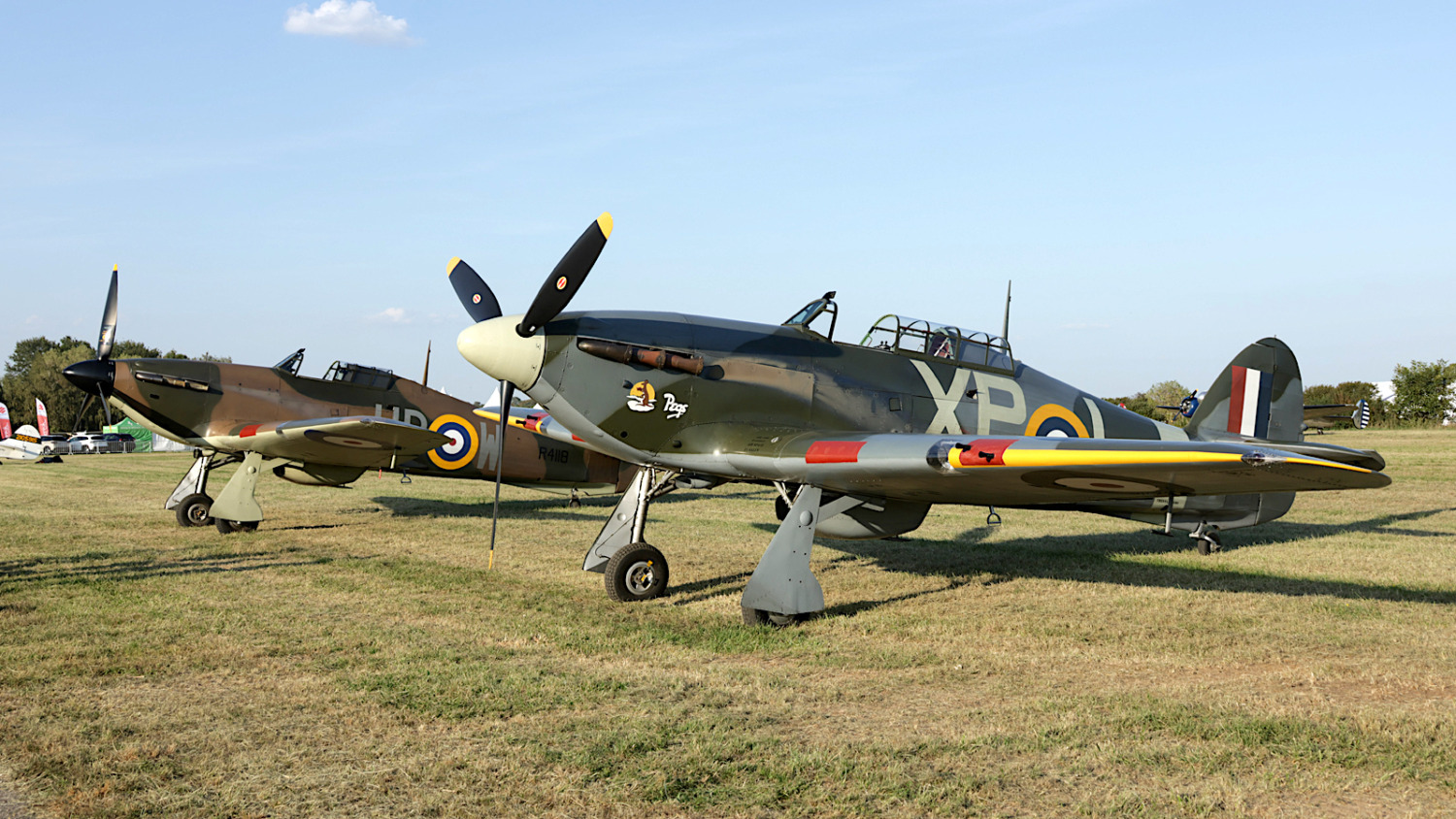 - Lineup der beiden wunderschönen Hawker Hurricane G-HUPW und G-HHII. Foto Christian Brechbühl