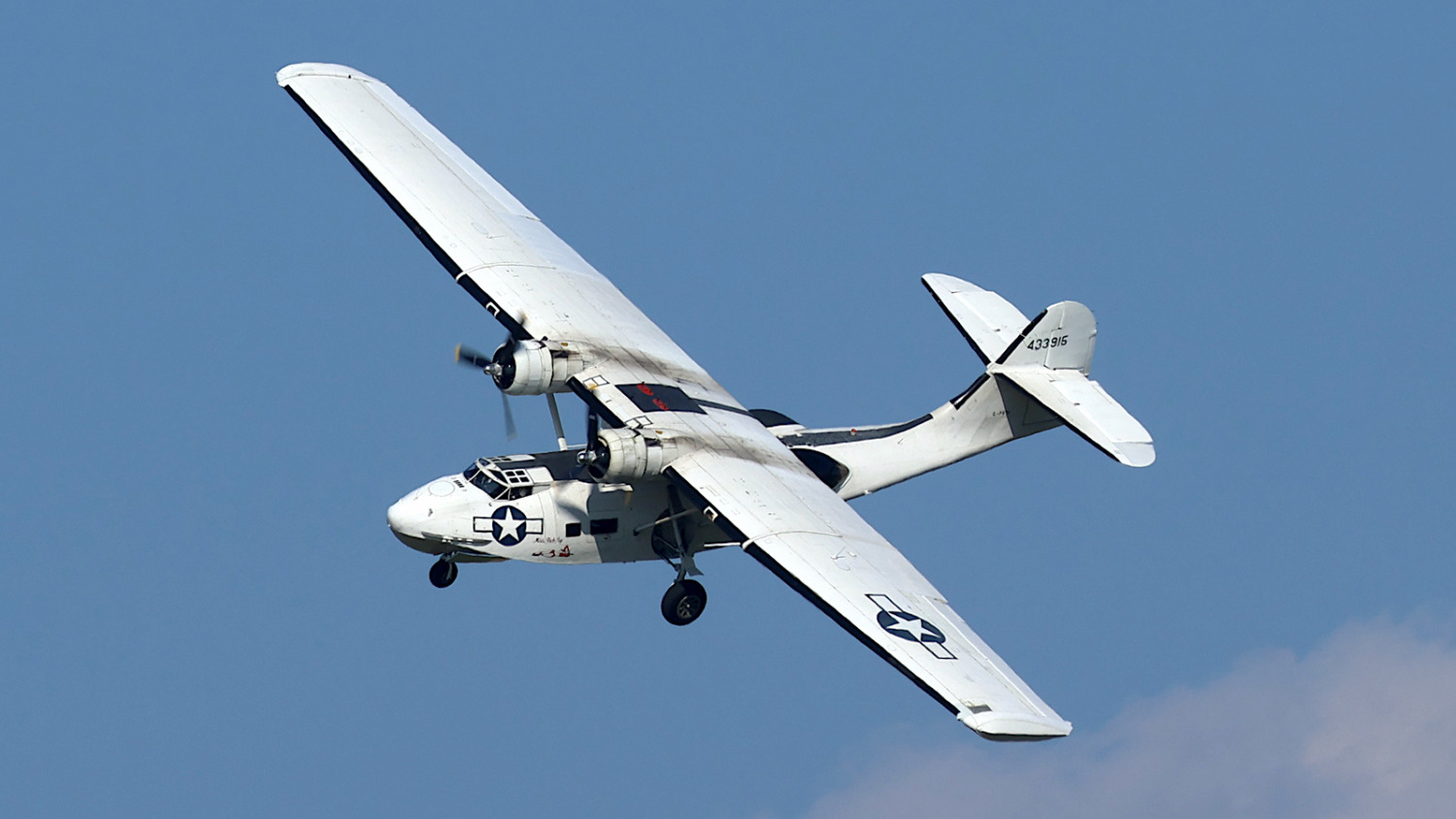 - Die Catalina PBY5A G-PBYA landet nach ihrer Vorführung mit einer starken Rechtskurve auf dem Platz. Foto Thomas Staffelbach