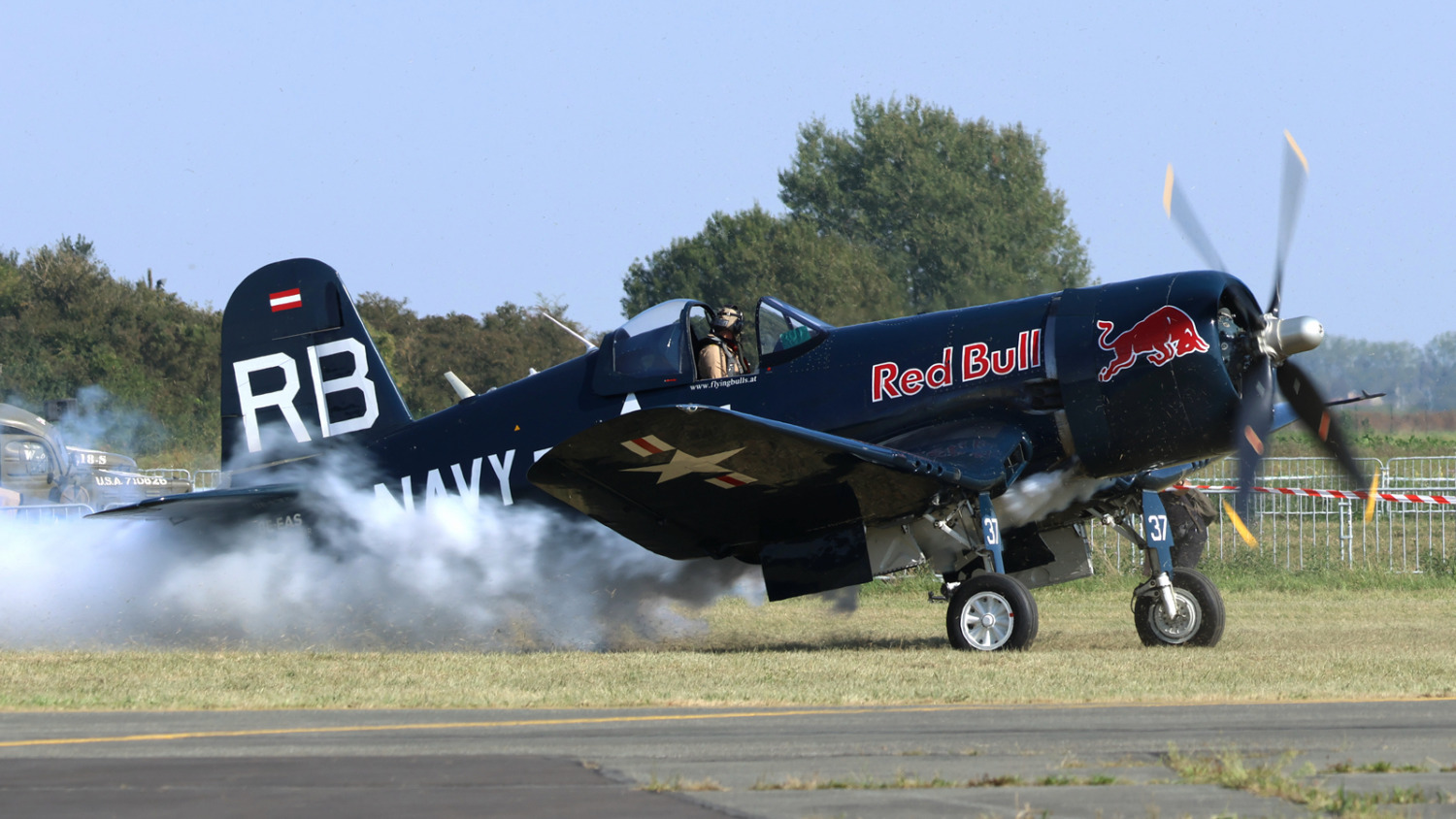 - Massiver Rauch beim Anlassen der „Flying Bulls“ Corsair F4U-4 OE-ESA. Foto Christian Brechbühl