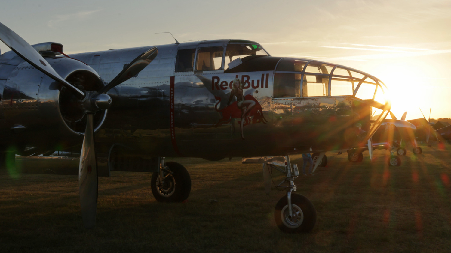 - Am frühen Morgen bei der Redbull Flightline, gab es Chancen für Stimmungsbilder hier die N6321C B-25 Mitchell ganz vorne. Foto Thomas Staffelbach