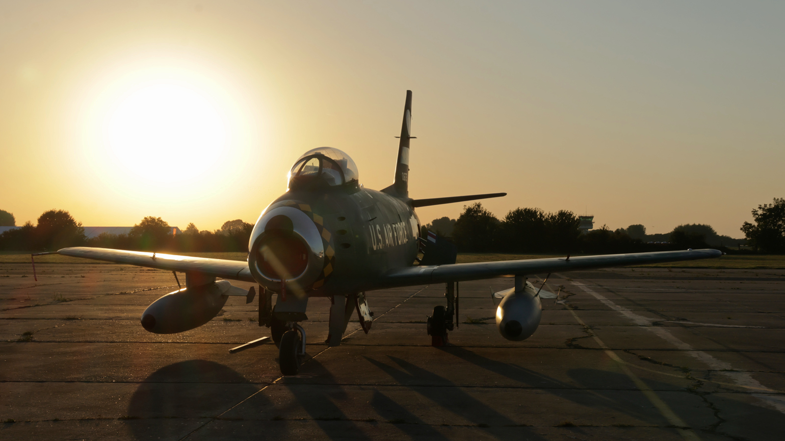 - Bei Sonnenaufgang noch ohne Fans. Die in Canada gebaute Sabre F-86 war früher bei der Deutschen Luftwaffe aktiv. Foto Thomas Staffelbach