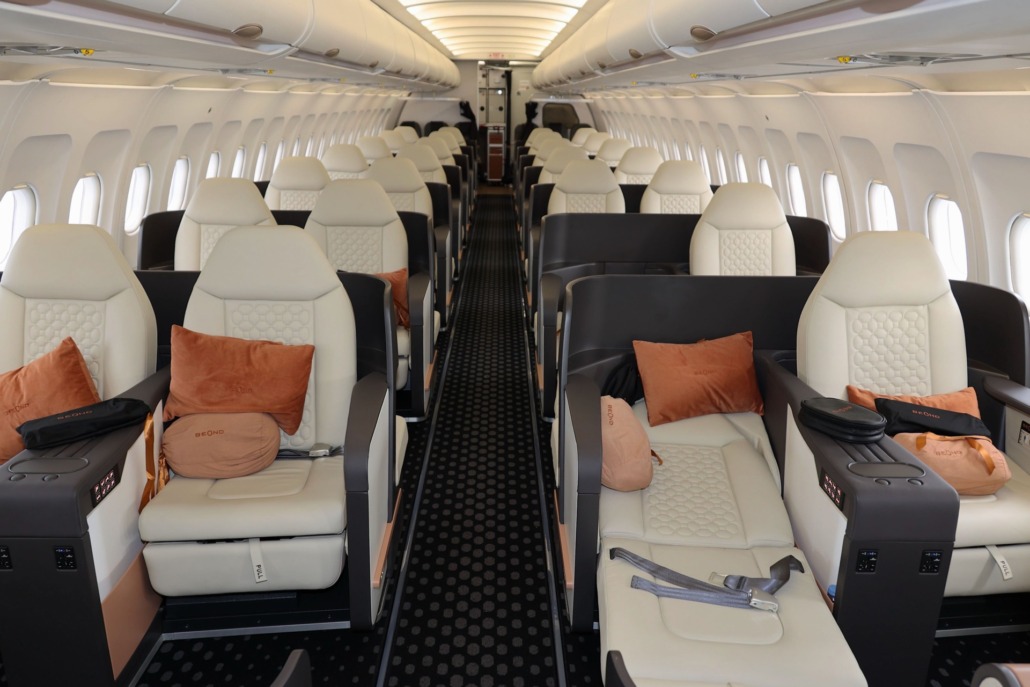 21. November 2023: Zum ersten Mal landete die neue Airline Beond am 17. November in Zürich und startete ihr neues Premium-Leisure-Angebot nach Male. Anlässlich des zweiten Besuchs stellten die Verantwortlichen am 21. November das neue Produkt vor: Mit nur 44 Plätzen startet der vorerst einzige Beond-Airbus jeweils dienstags und freitags von Zürich auf die Malediven – aber nicht nonstop, sondern via Dubai.