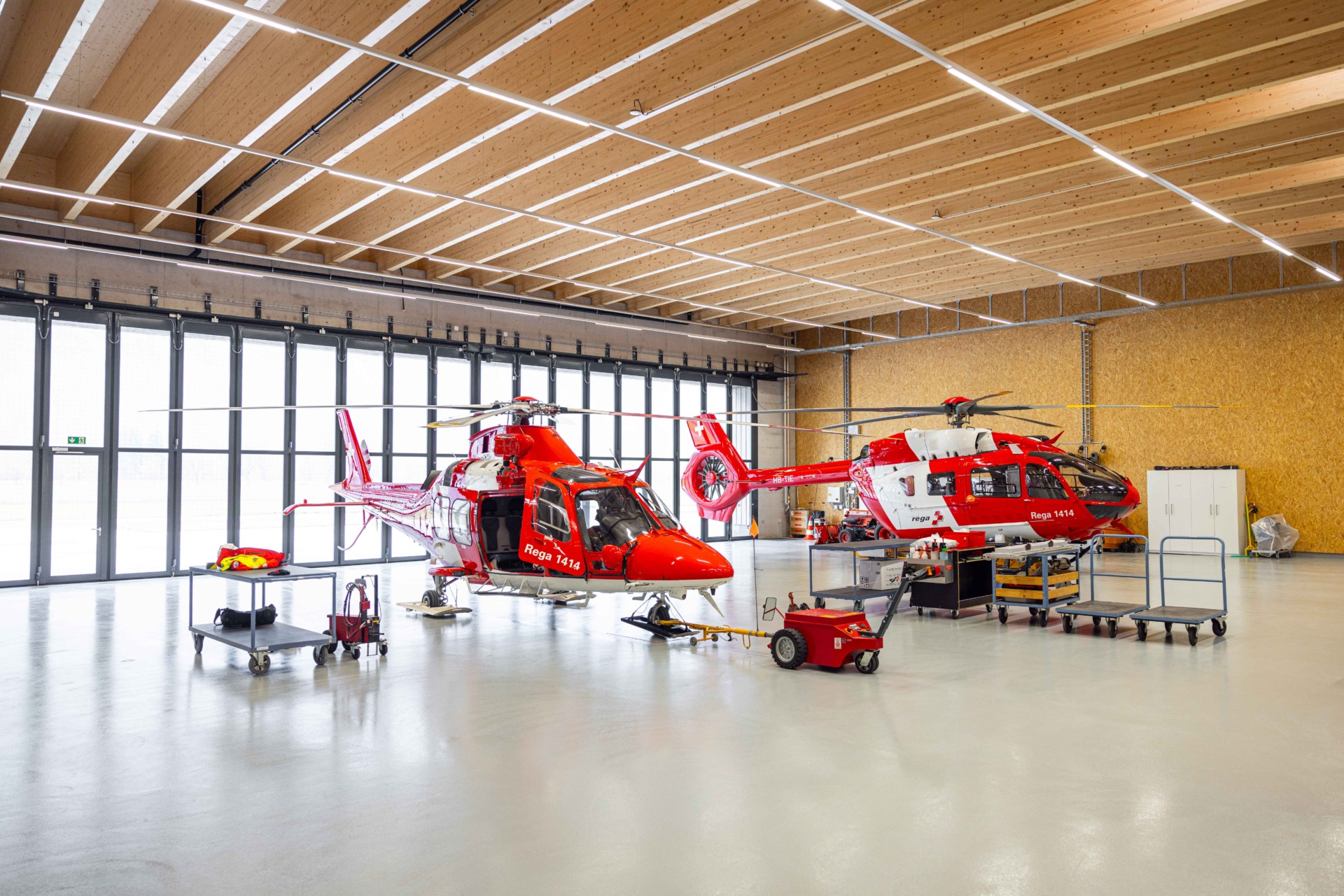 Das Bauprojekt begann lange vor dem Spatenstich im August 2024: Insgesamt dauerte die Realisierung neun Jahre. Grundlage war eine umfassende Machbarkeitsstudie, in der die Rega gemeinsam mit Fachspezialisten Flugrouten, Lärmberechnungen, Windanalysen und Hindernisprüfungen erarbeitete – stets unter Einhaltung der gesetzlichen Vorgaben, insbesondere beim Lärmschutz.Parallel dazu wurde eine Umweltverträglichkeitsprüfung durchgeführt: Ziel war es, die Auswirkungen des Einsatzbetriebs mit Rettungshelikoptern auf Natur und Tiere zu minimieren. So sei beispielsweise die Hangar-Beleuchtung nachts automatisch gesteuert, um Fledermäuse und andere Wildtiere möglichst nicht zu stören, und in die Fassade wurden Fledermauskästen integriert, hält die Rega weiter fest.