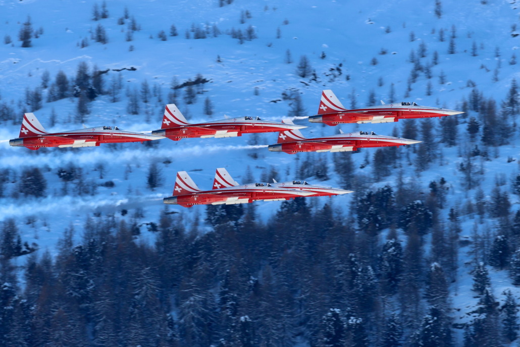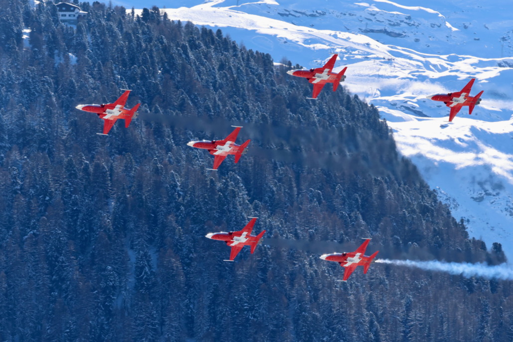 Die Patrouille Suisse am 31. Januar 2026 über St. Moritz. Foto Eugen Bürgler