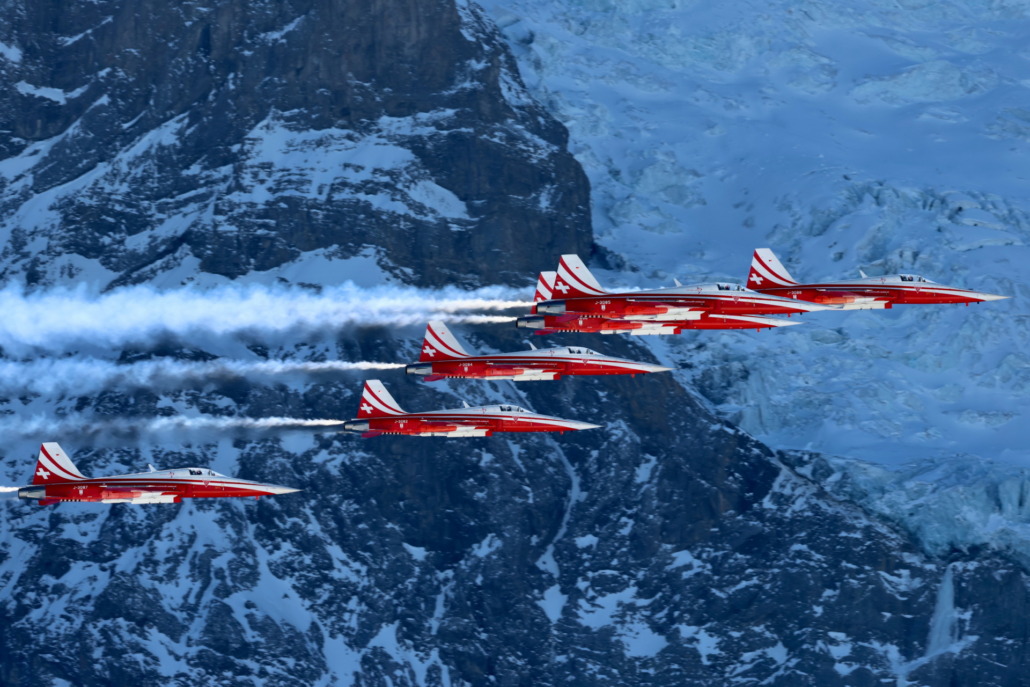 15. / 16. Januar 2026: Es ist eine Flugvorführung der Extraklasse, das Patrouille Suisse Programm über der Strecke der Internationalen Lauberhorn Skirennen. Heute führte das Patrouille Suisse Team 2025 ihr Training über dem Lauberhorn und der längsten Abfahrtsstrecke der Welt durch, am Freitag 16. Januar und am Samstag, 17. Januar sind die sechs rot-weissen F-5E Tiger der Schweizer Luftwaffe noch einmal in einem atemberaubenden Programm vor der Kulisse von Eiger, Mönch und Jungfrau zu sehen – sofern es die Wetterbedingungen zulassen. Wie das Lauberhorn-Wochenende für die Piloten der Patrouille Suisse abläuft und wie sie sich darauf vorbereiten,  lesen Sie auch in einer grossen Reportage in der nächsten Ausgabe von SkyNews.ch.