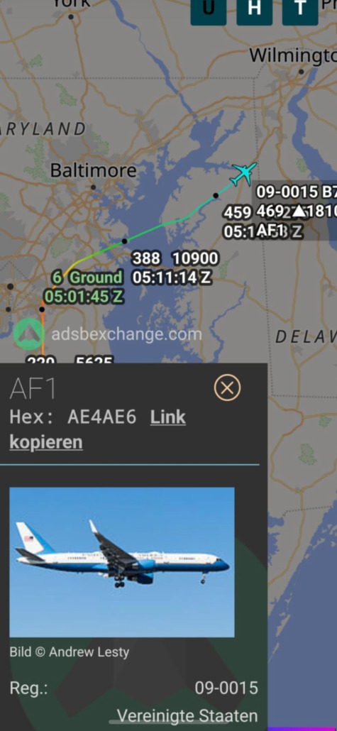 21. Januar 2026: Kurzfristige Planänderung: Der US-Präsident ist letzte Nacht mit einer VC-25A (Boeing 747-200B) mit der Registration 92-9000 zu seinem WEF-Besuch Richtung Schweiz gestartet ist. Vor dem Flug über den Atlantik musste die „Air Force One“ laut einer offiziellen Mitteilung aus dem Weissen Haus allerdings wegen eines „kleineren elektrischen Problems“ zum Ausgangsflughafen, der „Joint Base Andrews“ bei Washington, zurückkehren und auf ein anderes Flugzeug umsteigen. Dem Vernehmen nach befindet sich die zweite VC-25A derzeit in der Wartung. Deshalb nutzt der US-Präsident mit seiner Entourage für den Flug in die Schweiz eine kleinere C-32A der US Air Force (Registration 09-0015), eine Version der Boeing 757.