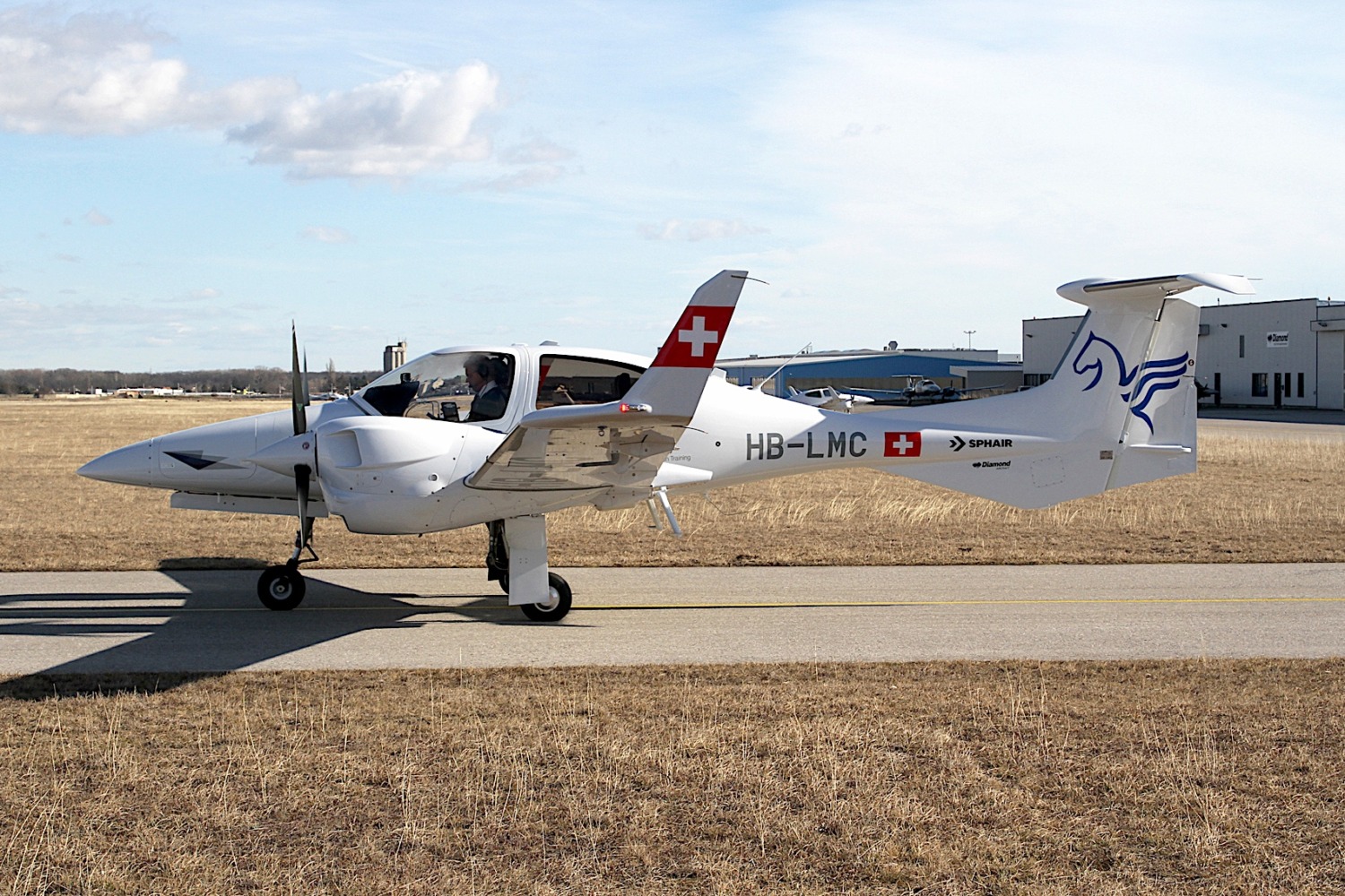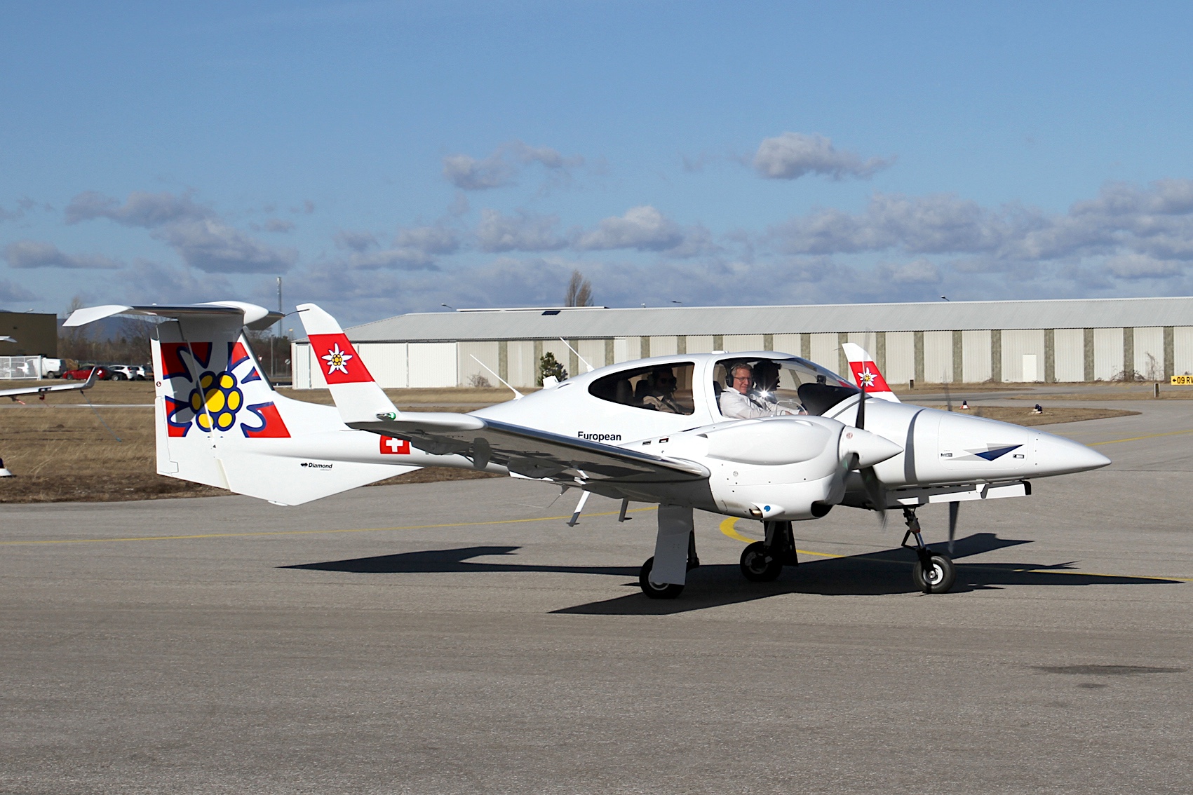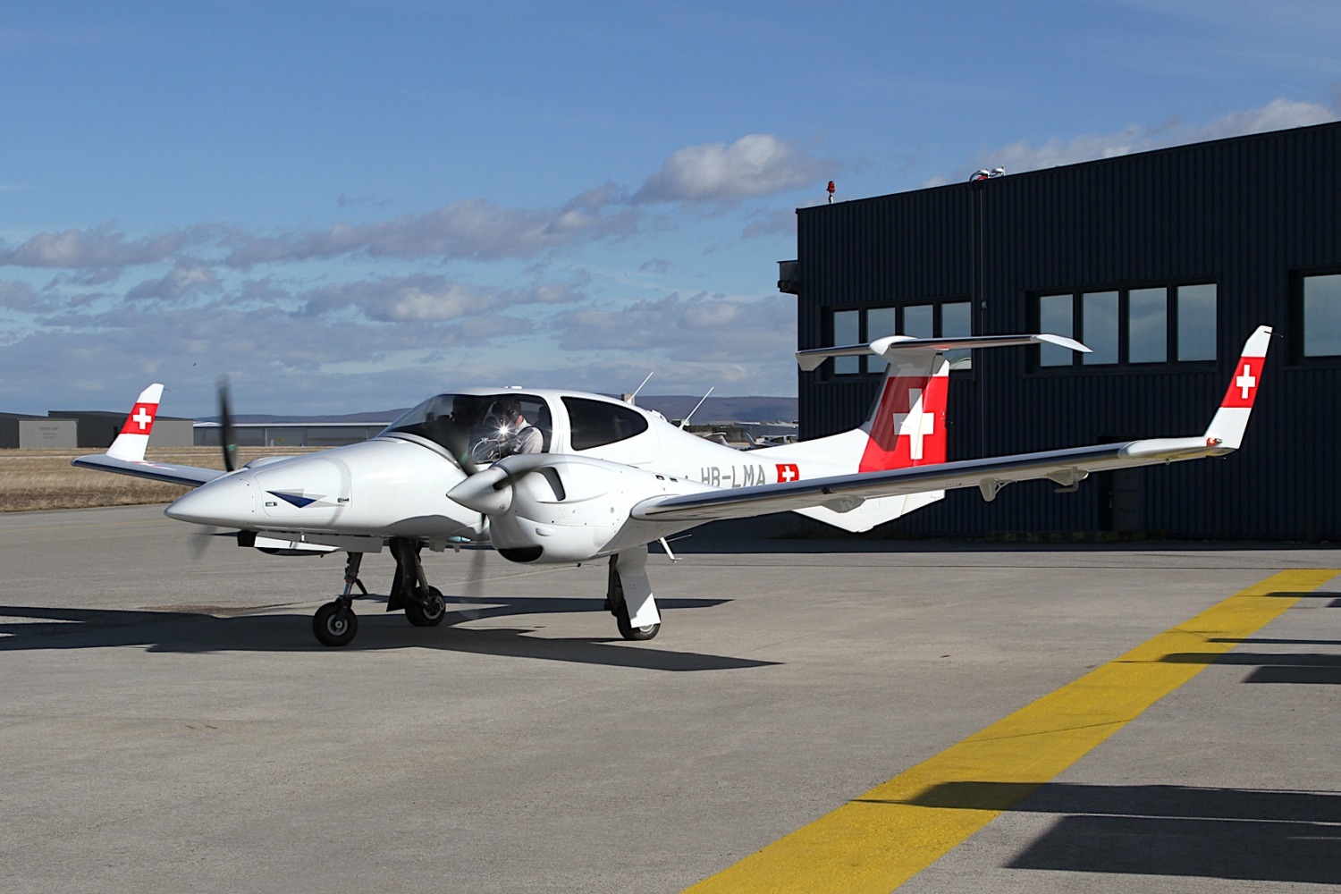 - Die DA42-VI der European Flight Academy HB-LMA in Swiss-Farben vor dem Start in Wiener Neustadt. Foto Franz Lackner