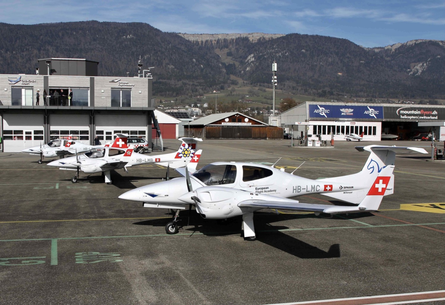 - Am 6. Februar 2024 trafen die drei neuen Diamond DA42-VI auf dem Flughafen Grenchen ein. Von dort aus werden sie nun zu den Schulungsflügen für Lufthansa Aviation Training starten. Foto Mario Richard