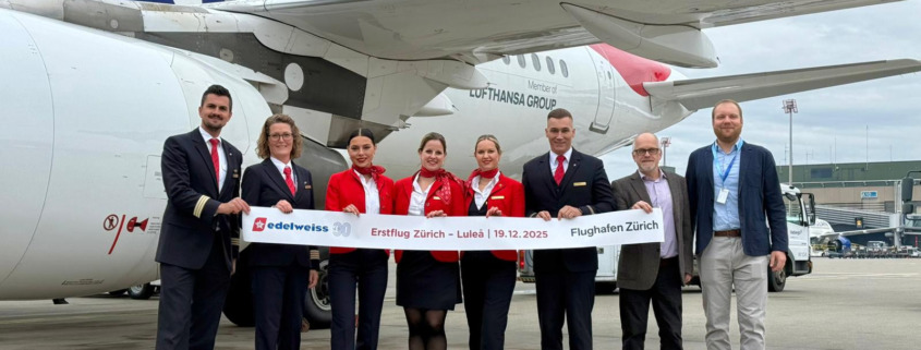 19. Dezember 2025: Am gestrigen Freitag, 19. Dezember, startete Edelweiss erstmals  nach Luleå in Schwedisch-Lappland. Damit nimmt Edelweiss eigenen Angaben zufolge erstmals eine Destination in Schweden in ihr Streckennetz auf. Die Stadt liegt rund 100 Kilometer südlich des Polarkreises und wird wöchentlich ab Zürich bis Ende März bedient.
