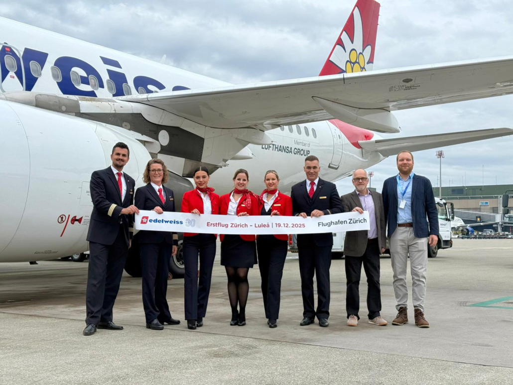 19. Dezember 2025: Am gestrigen Freitag, 19. Dezember, startete Edelweiss erstmals  nach Luleå in Schwedisch-Lappland. Damit nimmt Edelweiss eigenen Angaben zufolge erstmals eine Destination in Schweden in ihr Streckennetz auf. Die Stadt liegt rund 100 Kilometer südlich des Polarkreises und wird wöchentlich ab Zürich bis Ende März bedient.