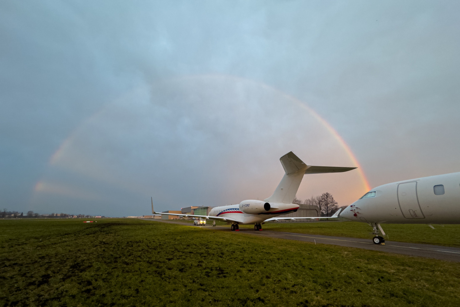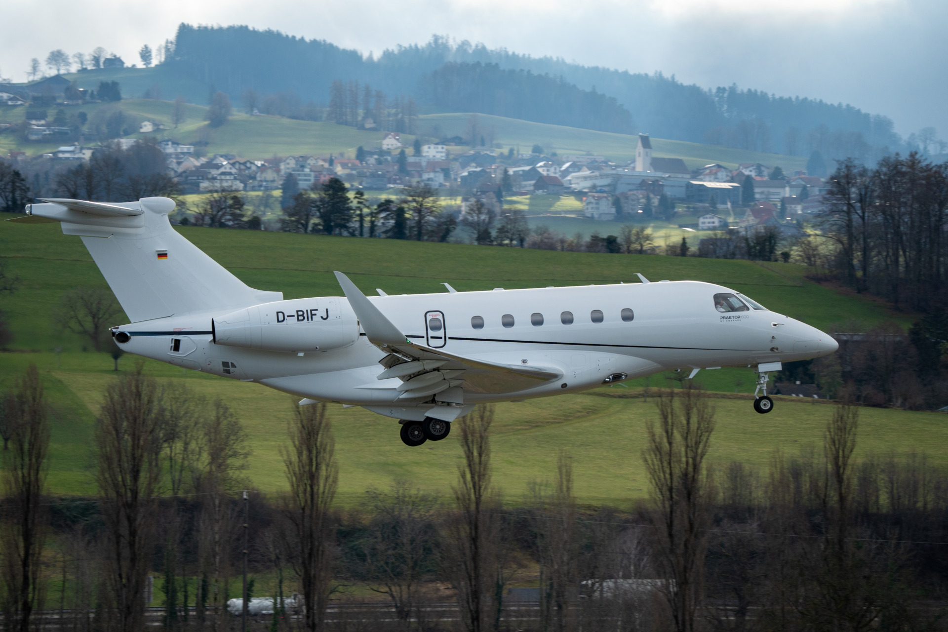 Am Donnerstag, dann endlich ein buchstäblicher „Licht-Blick“, schon am frühen Morgen zeigte sich ein „Licht-Streifen“ am Horizont und der Tag begann mit etwas Stimmung, bevor der Regen bis kurz vor Mittag einsetzte. Gegen den Nachmittag zeigte sich dann aber sogar nochmals die Sonne und St.Gallen-Altenrhein hatte doch noch ein paar Inbounds unter anderem auch die AW189 HB-XLQ oder die ziemlich mit Werbung zugekleisterte Citation YU-SCJ. So gesehen war es doch noch ein würdiger WEF-Tag. Am Freitag gab es bereits am frühen Morgen eigentlich schon die Outbound-Welle der grösseren parkierten Maschinen und auch das Wetter war wieder gnädig. Im Verlauf des Naschmittags war der „WEF-Spuk“ am Bodensee aber schon fast wieder vorbei, als eines der letzten Flugzeuge verliess die monegassische Fürsten-Maschine 3A-MGA St.Gallen-Altenrhein.